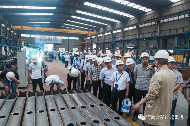 24日下午,河南礦山迎來了多批重要的客人,國(guó)家質(zhì)檢總局特種設(shè)備局相關(guān)領(lǐng)導(dǎo),中國(guó)重型機(jī)械工業(yè)協(xié)會(huì)相關(guān)領(lǐng)導(dǎo)、重機(jī)協(xié)會(huì)橋式起重機(jī)專業(yè)委員會(huì)300家會(huì)員單位和全國(guó)800家起重裝備整機(jī)制造商、配套件制造商及服務(wù)商分批蒞臨河南礦山,實(shí)地參觀考察河南礦山。公司創(chuàng)始人崔培軍、總經(jīng)理任海濤分別接待,并熱情的向來訪客人介紹了公司概況、工藝革新及機(jī)器人換人計(jì)劃等。