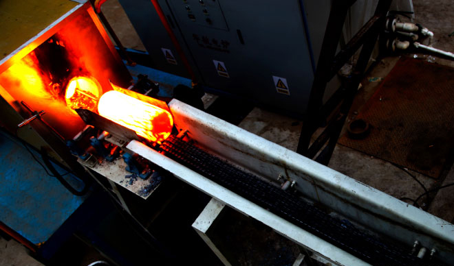 該智能流水線將鍛壓和碾壓軋制工藝融為一體,從毛坯下料、上料、加熱、初鍛、碾壓成型到成品輸出,實(shí)現(xiàn)了自動(dòng)化流水作業(yè)。它是我公司《起重機(jī)車輪碾壓成型新工藝裝備》、《起重機(jī)車輪鍛壓用新型加熱工藝裝備》等多項(xiàng)專利技術(shù)成果轉(zhuǎn)化為生產(chǎn)力的標(biāo)志。