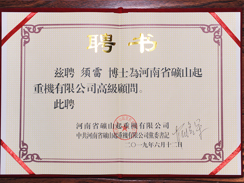 河南礦山聘任起重行業(yè)專家、工學(xué)博士須雷先生為公司高級(jí)顧問!
